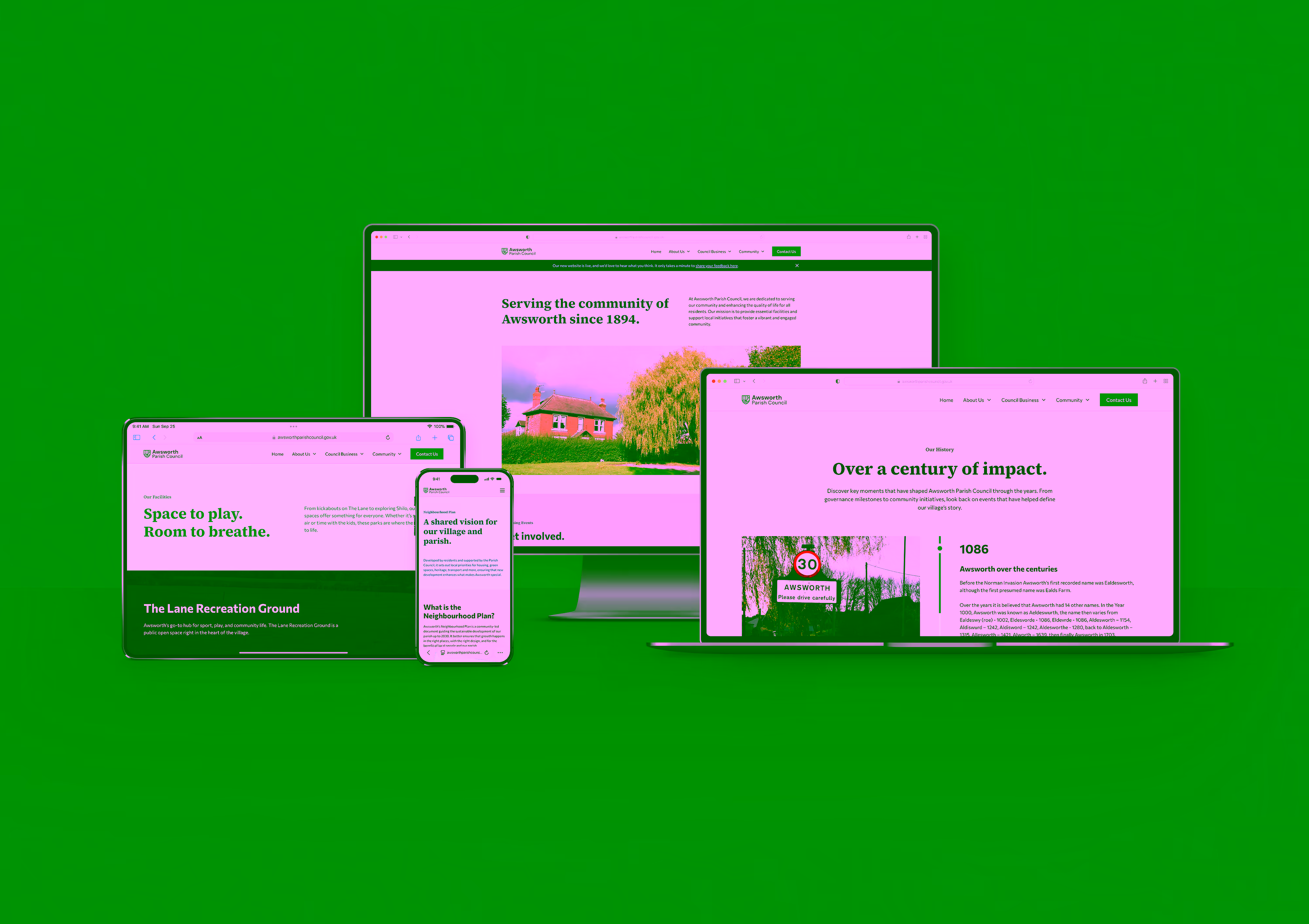 Awsworth Parish Council, a small but deeply rooted community authority, sought a complete refresh of its public-facing presence. From branding and digital identity to IT infrastructure, the aim was to modernise operations and communication while preserving the local heritage and character residents value. My role spanned strategy, design, and implementation across three areas: brand identity, website design, and Microsoft 365 managed services. The result was a unified transformation, one that reflects Awsworth’s past while equipping it for a more connected and efficient future.